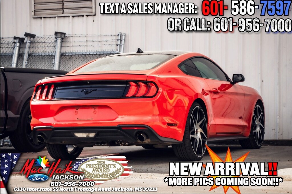Race Red 2022 Ford Mustang EcoBoost RWD 10-Speed Automatic EcoBoost 2.3L I4 GTDi DOHC Turbocharged VCT Mustang EcoBoost, 2D Coupe, EcoBoost 2.3L I4 GTDi DOHC Turbocharged VCT, 10-Speed Automatic, 3.15 Limited Slip Rear Axle Ratio, Auto High-beam Headlights, Black Accent Package, Black Blade Decklid Spoiler, Black Front & Rear Pony Badges, Black Grille, Black Mirror Caps, Electronic Stability Control, Equipment Group 100A, Fully automatic headlights, Painted Black Roof, Rear Parking Sensors, Telescoping steering wheel, Tilt steering wheel, Wheels: 19" x 8.5" Ebony Black-Painted Aluminum.