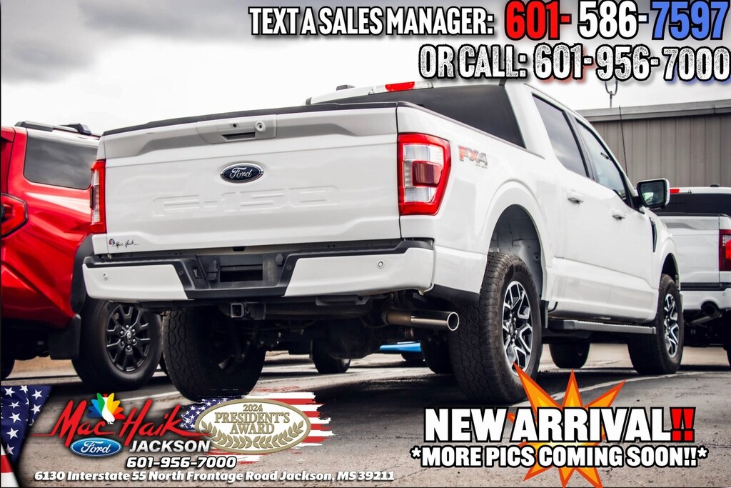 Star White Metallic Tri-Coat 2023 Ford F-150 Lariat 4WD 10-Speed Automatic 5.0L V8 F-150 Lariat, 4D SuperCrew, 5.0L V8, 4WD, Star White Metallic Tri-Coat, 360 Degree Camera, 4x4 FX4 Off-Road Bodyside Decal, Accent-Color Angular Step Bars, AM/FM radio: SiriusXM with 360L, Body-Color Front & Rear Bumpers, Box Side Decals, Chrome Single-Tip Exhaust, Class IV Trailer Hitch Receiver, Connected Built-In Navigation, Dark 2-Bar & 1 Minor Bar Style Grille, Electronic Locking w/3.31 Axle Ratio, Equipment Group 501A Standard, Evasive Steering Assist, Extended Range 36 Gallon Fuel Tank, Ford Co-Pilot360 Assist 2.0, FX4 Off-Road Package, GVWR: 7,050 lbs Payload Package, Hill Descent Control, Integrated Trailer Brake Controller, Intelligent Adaptive Cruise Control w/Stop & Go, Intersection Assist, Lariat Sport Appearance Package, Monotube Rear Shocks, Off-Road Tuned Front Shock Absorbers, Pro Trailer Backup Assist & Pro Trailer Hitch Assist, Radio: B&O Sound System by Bang & Olufsen, Rock Crawl Mode, SYNC 4 w/Enhanced Voice Recognition, Trailer Tow Package, Wheels: 18" 6-Spoke Machined Aluminum.