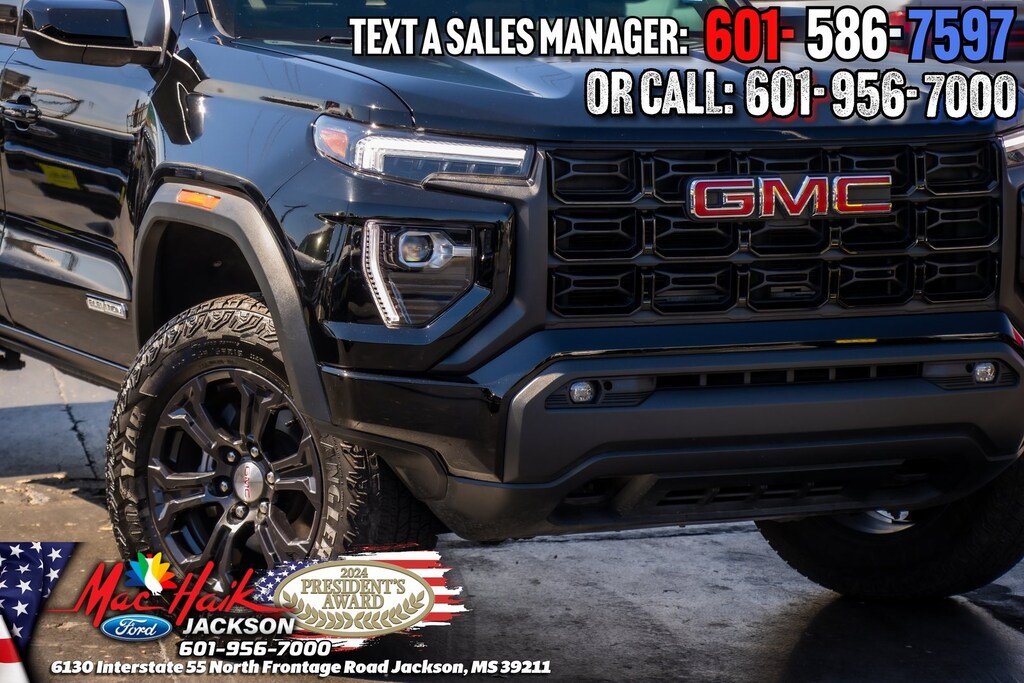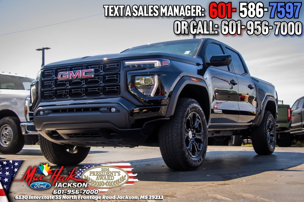 Onyx Black 2024 GMC Canyon Elevation RWD 8-Speed Automatic 2.7L I4 Turbocharged DOHC 16V LEV3-SULEV30 310hp Canyon Elevation, 4D Crew Cab, 2.7L I4 Turbocharged DOHC 16V LEV3-SULEV30 310hp, 8-Speed Automatic, RWD, Onyx Black, Black Cloth, 120-Volt Bed Mounted Power Outlet, 2 Rear USB Ports in Center Console (Charge-Only), 8-Way Power Driver Seat Adjuster, Automatic Locking Rear Differential, Canyon Pro Safety, Convenience Package, Driver & Front Passenger Illuminated Visors, Dual-Zone Automatic Air Conditioning, EZ-Lift & Lower Tailgate, Front LED Fog Lamps, Heated Driver & Front Passenger Seats, Heated Power-Adjustable Outside Mirrors, Inside Rear-View Auto-Dimming Mirror, Interior Overhead Courtesy Light w/Dual Reading Lamp, Manual Rear-Sliding Window, MultiStow Tailgate, Navigation System, Power Driver Lumbar Control Seat Adjuster, Preferred Equipment Group 2VL, Preferred Package, ProGrade Trailering System, Rear of Console 120-Volt Power Outlet, Rear-Window Electric Defogger, Remote Vehicle Starter System, Tailgate Keyed Cylinder Lock, Tilt & Telescopic Manual Steering Column, Trailering App System, Trailering Package.