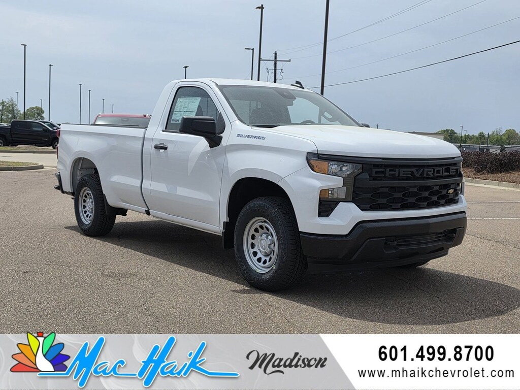 Summit White 2026 Chevrolet Silverado 1500 WT RWD 10-Speed Automatic EcoTec3 5.3L V8 10-Speed Automatic, Jet Black Vinyl. Price includes: $4250 - Customer Cash. Exp. 04/30/2026 $500 - Bonus Cash. Exp. 04/30/2026