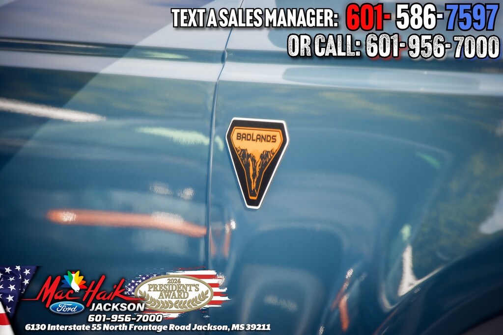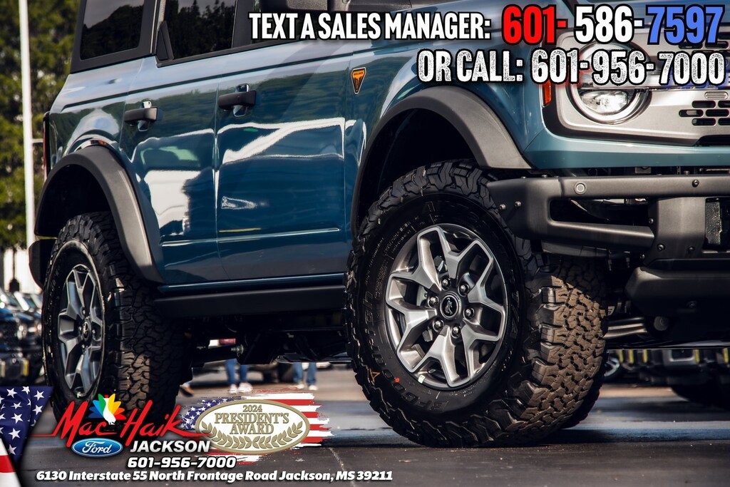 Azure Gray Metallic 2024 Ford Bronco Badlands 4WD 10-Speed Automatic 2.7L EcoBoost V6 Bronco Badlands, 4D Sport Utility, 2.7L EcoBoost V6, 10-Speed Automatic, 4WD, Azure Gray Metallic, Black Onyx Leather, 2-Door Intelligent Access w/Lock/Unlock, 360-Degree Camera, Adaptive Cruise Control, Additional Sound Deadening, Ambient Footwell Lighting, Auto-Dimming Interior Rear-View Mirror, Dr & Pass Illuminated Sliding Visor Vanity Mirrors, Dual Smart Charging USB Ports, Dual-Zone Electronic Automatic Temperature Control, Equipment Group 334A High/Lux Package, Evasive Steering Assist, Front Parking Sensors, Front Row Heated Seats, Heated Steering Wheel, Information on Demand Panel, Power Outlet - Back Side of Center Floor Console, Radio: B&O Sound System by Bang & Olufsen, Rear Parking Sensors, Sideview Mirrors, Universal Garage Door Opener, Wireless Charging Pad.