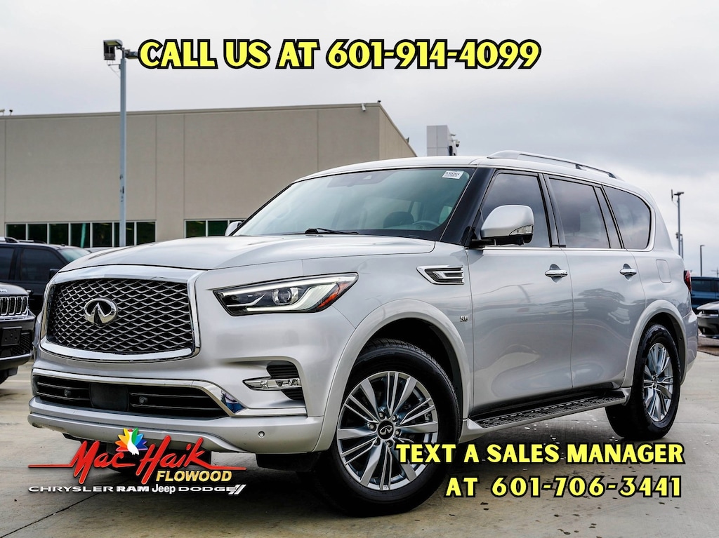 Liquid Platinum 2020 INFINITI QX80 LUXE 4WD 7-Speed Automatic 5.6L V8 Local Trade, Blind Spot Intervention (BSI), Blind Spot Warning, Intelligent Cruise Control, Lane Departure Prevention (LDP), Memory seat, Navigation system: INFINITI InTouch Navigation, Power driver seat, Power Liftgate, ProASSIST Package, Smart Rear View Mirror, Spoiler.