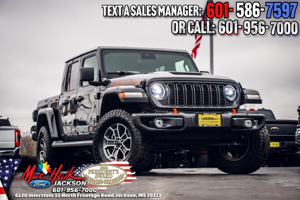 Black Clearcoat 2024 Jeep Gladiator Mojave 4WD 8-Speed Automatic 3.6L V6 24V VVT Gladiator Mojave, 4D Crew Cab, 3.6L V6 24V VVT, 8-Speed Automatic, 4WD, Black Clearcoat, Black Leather, 12.3 Touchscreen Display, 4G LTE Wi-Fi Hot Spot, Alexa Built-In, Alpine Premium Audio System, Apple CarPlay, Auto High Beam Headlamp Control, Auto-Dimming Rear-View Mirror, Blind Spot & Cross Path Detection, Bluetooth Wireless Speaker, Body Color 3-Piece Hard Top, Body Color Rubicon Highline Flare, Connected Travel & Traffic Services, Connectivity - US/Canada, Emergency/Assistance Call, Google Android Auto, GPS Antenna Input, GPS Navigation, HD Radio, Heated Front Seats, Heated Steering Wheel, Integrated Center Stack Radio, Integrated Off-Road Camera, Integrated Voice Command w/Bluetooth, Leather Trimmed Bucket Seats, Mojave X Package, MOPAR Hardtop Headliner, ParkSense Rear Park Assist System, Quick Order Package 24A Mojave X, Radio: Uconnect 5 Nav w/12.3 Display, Rock Protection Sill Rails, SiriusXM Radio Service, SiriusXM w/360L, Steel Front Bumper, Steel Rear Bumper, USB Host Flip.
