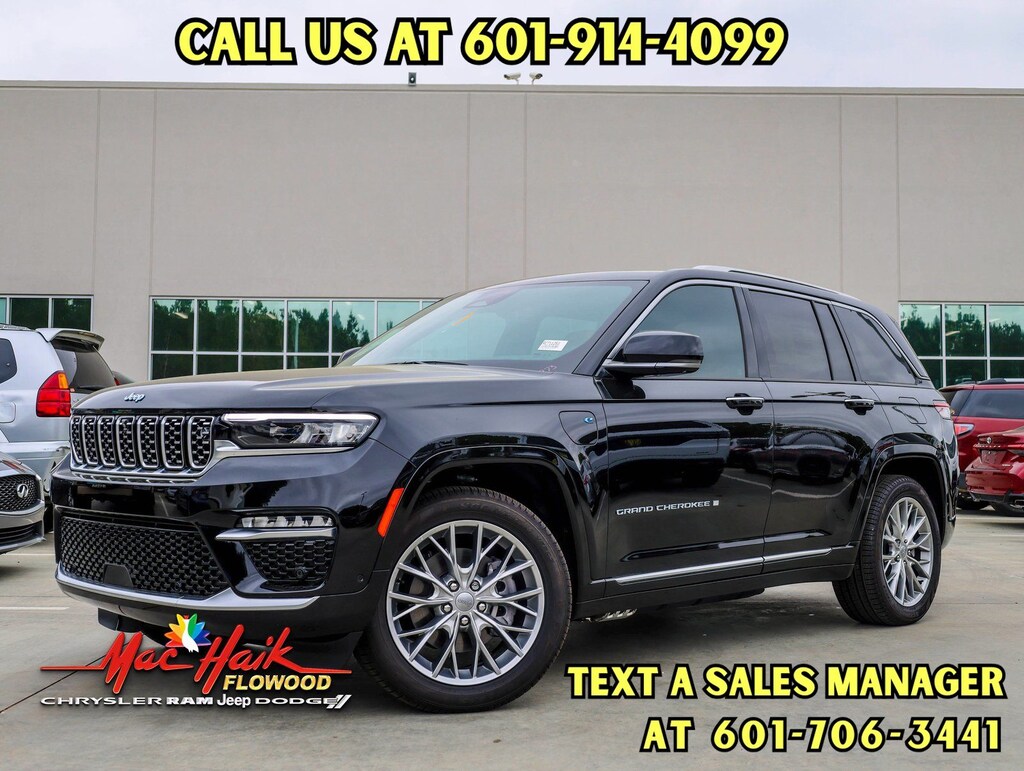 Diamond Black Crystal Pearlcoat 2024 Jeep Grand Cherokee Summit 4xe 4WD 8-Speed Automatic 2.0L I4 DOHC 2.0L I4 DOHC, 4WD, 2nd-Row Manual Window Shades, ABS brakes, Advanced Protech Group IV, Alloy wheels, Compass, Electronic Stability Control, Front dual zone A/C, Heads-Up Display, Heated door mirrors, Heated front seats, Heated rear seats, Illuminated entry, Low tire pressure warning, Luxury Tech Group V, Navigation System, Night Vision/Pedestrian-Animal Detection, Power Liftgate, Power moonroof, Rear dual zone A/C, Rearview Autodim Digital Display Mirror, Remote keyless entry, Traction control, Wireless Charging Pad.