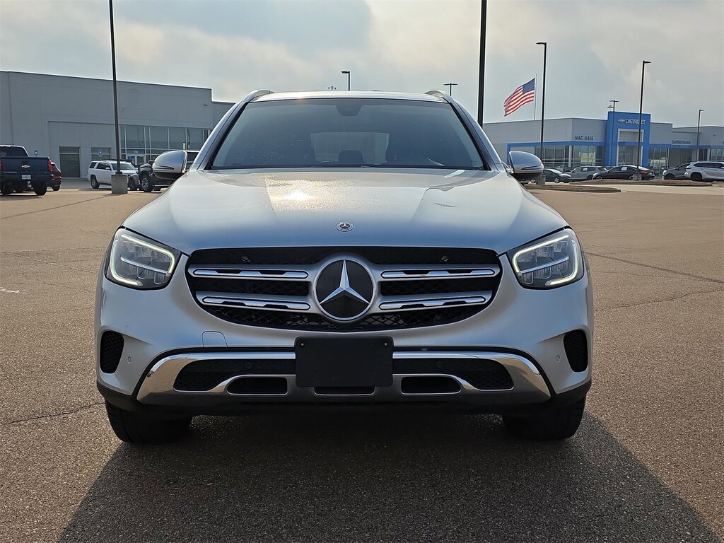 This 2021 Mercedes-Benz GLC GLC 300 in Silver includes the following features: I4 9-Speed Automatic RWD Car Bravo Certified, 10.25 Center Touchscreen Display, 3.27 Axle Ratio, 4-Way Lumbar Support, 4-Wheel Disc Brakes, 6 Speakers, ABS brakes, Air Conditioning, Alloy wheels, AM/FM radio, Apple CarPlay®/Android Auto®, Auto tilt-away steering wheel, Auto-dimming door mirrors, Auto-dimming Rear-View mirror, Automatic temperature control, Brake assist, Bumpers: body-color, Child-Seat-Sensing Airbag, Delay-off headlights, Driver door bin, Driver vanity mirror, Dual front impact airbags, Dual front side impact airbags, Electronic Stability Control, Emergency communication system: eCall Emergency System, Exterior Parking Camera Rear, Four wheel independent suspension, Front anti-roll bar, Front Bucket Seats, Front Center Armrest, Front dual zone A/C, Front reading lights, Fully automatic headlights, Garage door transmitter: HomeLink, Genuine wood dashboard insert, Heated door mirrors, Heated Front Bucket Seats, Heated front seats, Illuminated entry, Knee airbag, Leather steering wheel, Low tire pressure warning, MB-Tex Upholstery, Memory seat, Occupant sensing airbag, Outside temperature display, Overhead airbag, Overhead console, Panic alarm, Passenger door bin, Passenger vanity mirror, Power door mirrors, Power driver seat, Power Front Seat w/Driver Memory, Power Liftgate, Power passenger seat, Power steering, Power windows, Radio data system, Radio: MBUX Multimedia System, Rain sensing wipers, Rear anti-roll bar, Rear fog lights, Rear reading lights, Rear seat center armrest, Rear window defroster, Rear window wiper, Remote keyless entry, Roof rack: rails only, Security system, Speed control, Speed-sensing steering, Split folding rear seat, Spoiler, Steering wheel memory, Steering wheel mounted audio controls, Tachometer, Telescoping steering wheel, Tilt steering wheel, Traction control, Trip computer, Turn signal indicator mirrors, Variably intermittent wipers, and Wheels: 8J x 18 ET 38 Split 5-Spoke. 22/29 City/Highway MPG
