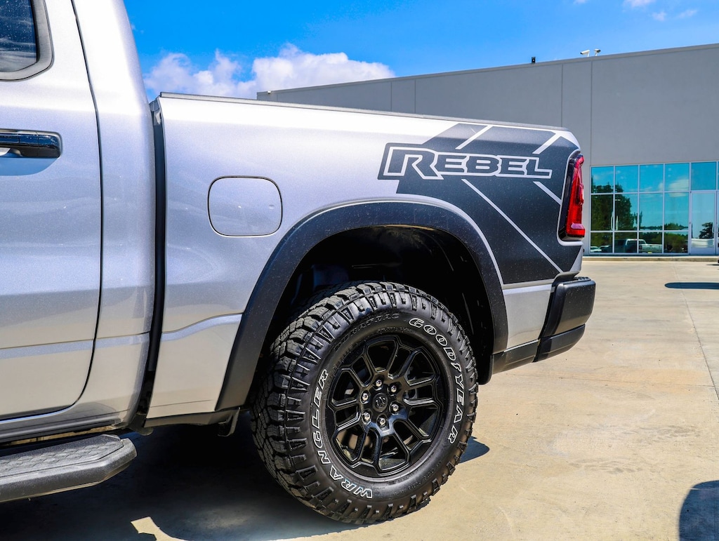 Billet Silver Metallic Clearcoat 2025 Ram 1500 Rebel 4WD 8-Speed Automatic 3.0L I6 115V Auxiliary Rear Power Outlet, 2-Door Passive Entry, Front Door Locks, 4G LTE Wi-Fi Hot Spot, Accent Color Door Handles, Accent Color Premium Power Mirrors, Accent Color Tailgate Handle, Apple CarPlay, Auto Power-Folding Mirrors, Auto-Dimming Exterior Driver Mirror, Black Painted Exterior Mirrors Caps, Connected Travel & Traffic Services, Connectivity - US/Canada, Convex Wide-Angle Exterior Mirror Insert, Driver Seat Memory, Dual Wireless Charging Pad, Exterior Mirrors Approach Lamps, Exterior Mirrors Courtesy Lamps, Exterior Mirrors w/Heating Element, Exterior Mirrors w/Memory, Exterior Mirrors w/Supplemental Signals, Front Passenger Interactive Display, Google Android Auto, GPS Antenna Input, GPS Navigation, harman/kardon 19 Speaker Premium Sound, HD Radio, Heated Second Row Seats, Integrated Voice Command w/Bluetooth, Media Hub w/2 Charge Only USBs, Off-Road Information Pages, Power Adjust 8-Way Front Passenger Seat, Power Adjustable Pedals w/Memory, Power Tailgate, Proximity Approach/Departure Lamps, Radio: Uconnect 5 Nav w/14.4" Display, Radio/Driver Seat/Mirrors/Pedals Memory, Rain Sensitive Windshield Wipers, Rear Window Defroster, Rebel Level 2 Equipment Group, Security Alarm, SiriusXM w/360L, Smartphone As A Key Capable, USB Host Flip.